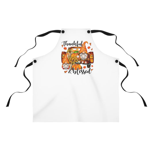 Thanksgiving Gnome Riding Vintage Truck Apron White - Festive Holiday Kitchen Decor - Rustic Holiday Kitchen Decorations