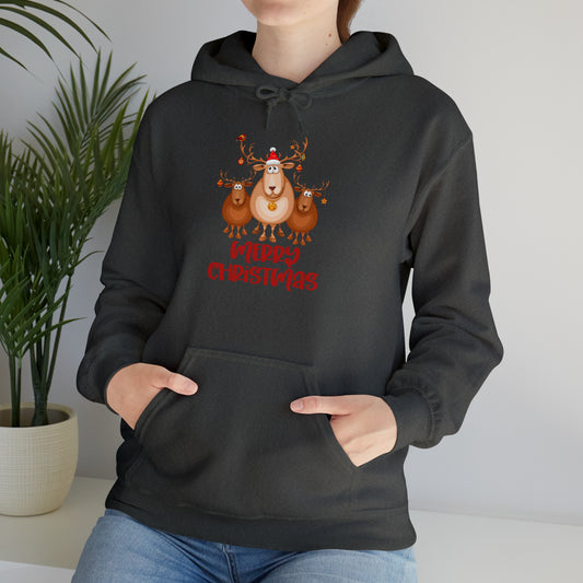 Joyful Reindeer Trio Merry Christmas Sweatshirt, Unisex Heavy Blend™ Hooded Sweatshirt