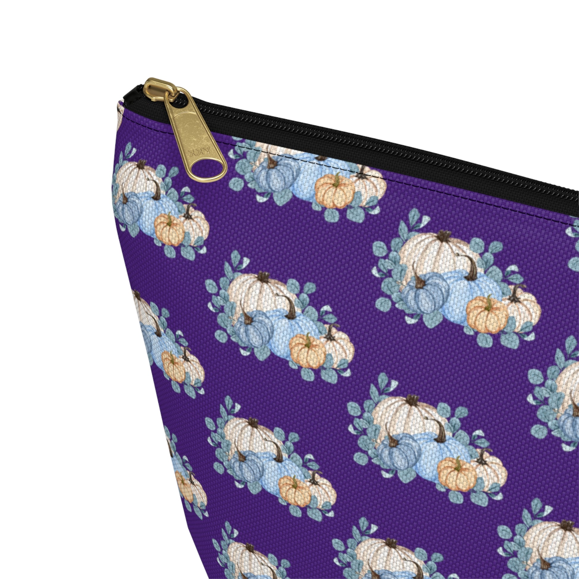 Fall Pumpkin Stack T-Bottom Zippered Pouch with Cream, Orange, and Blue Details