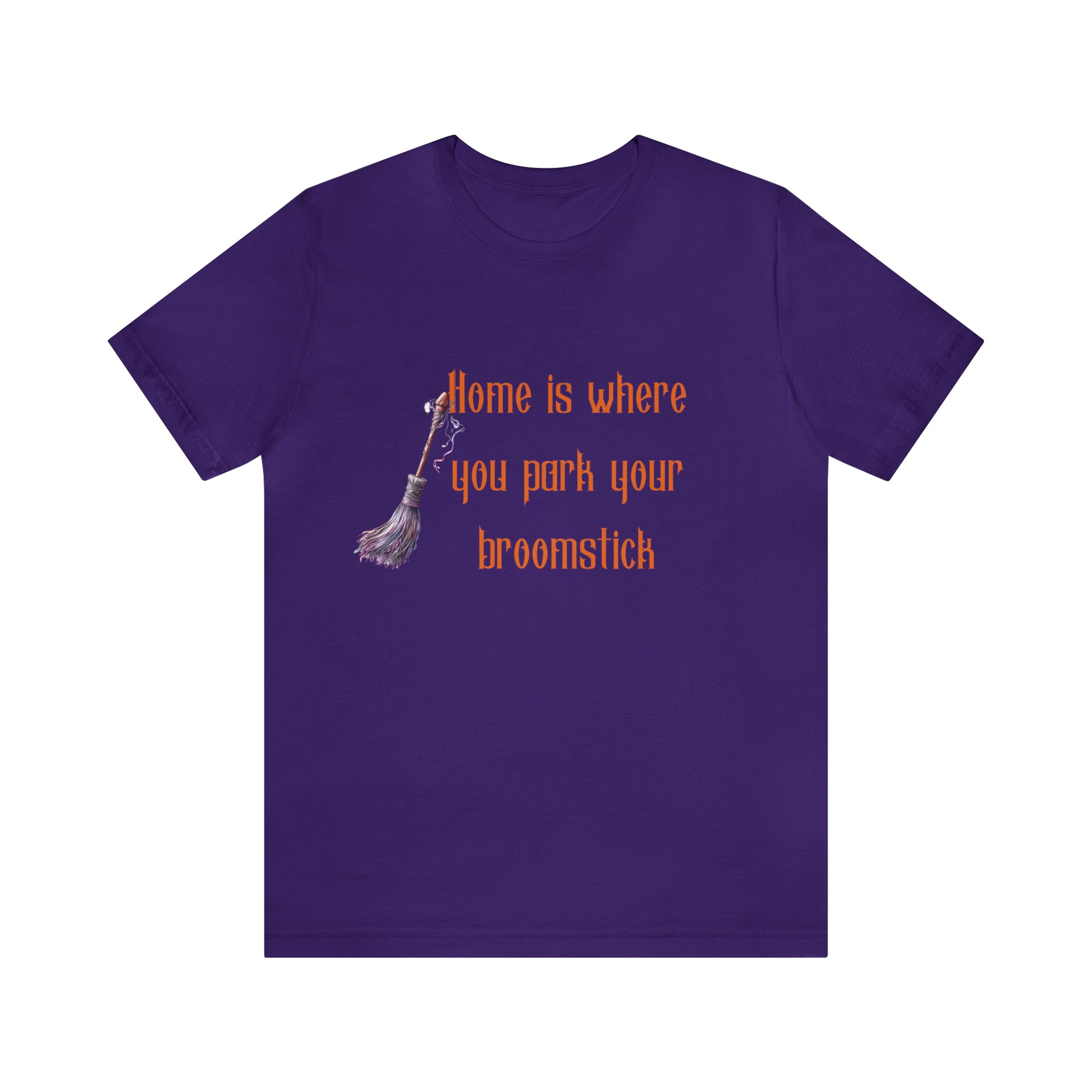 This captivating t-shirt combines a touch of magic with a dash of humor. Featuring a beautifully illustrated broomstick and the playful saying "Home Is Where You Park Your Broomstick," it's the perfect choice for those who appreciate the mystical and love to add a little charm to their everyday style.
