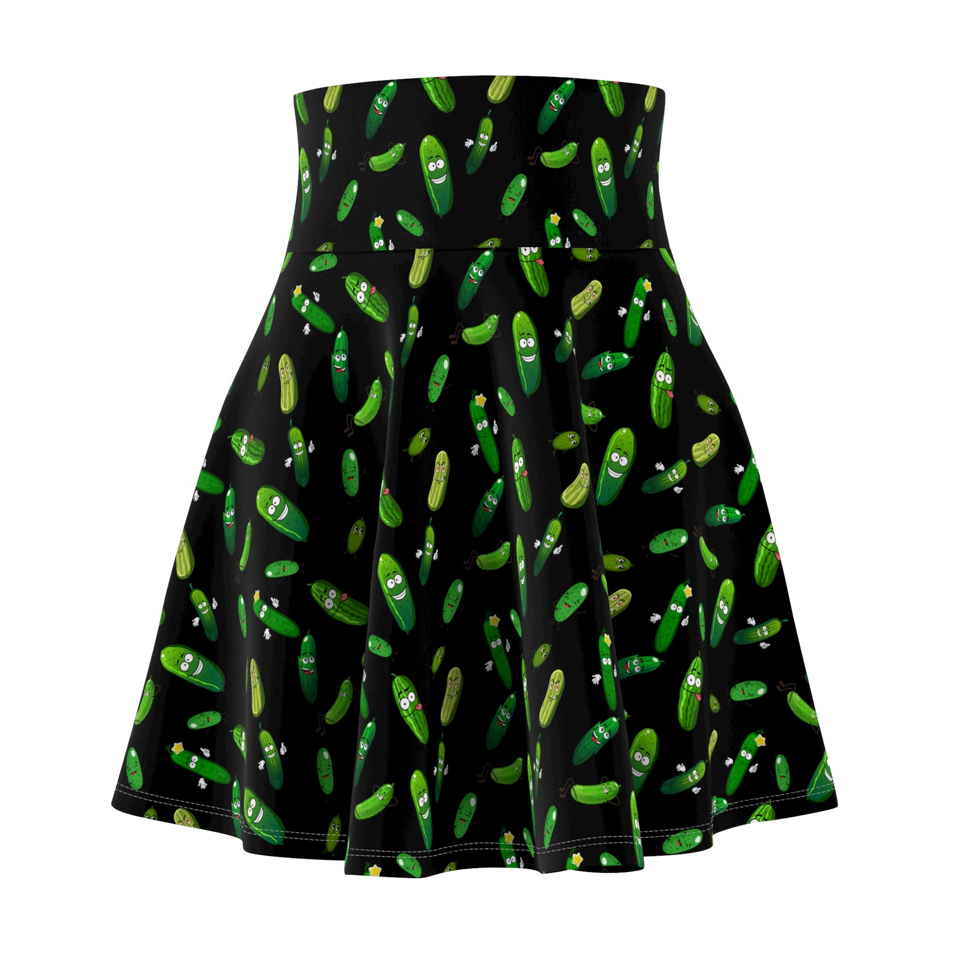 Pickle Party Delight: Black Skater Skirt with Whimsical Pickle Pattern