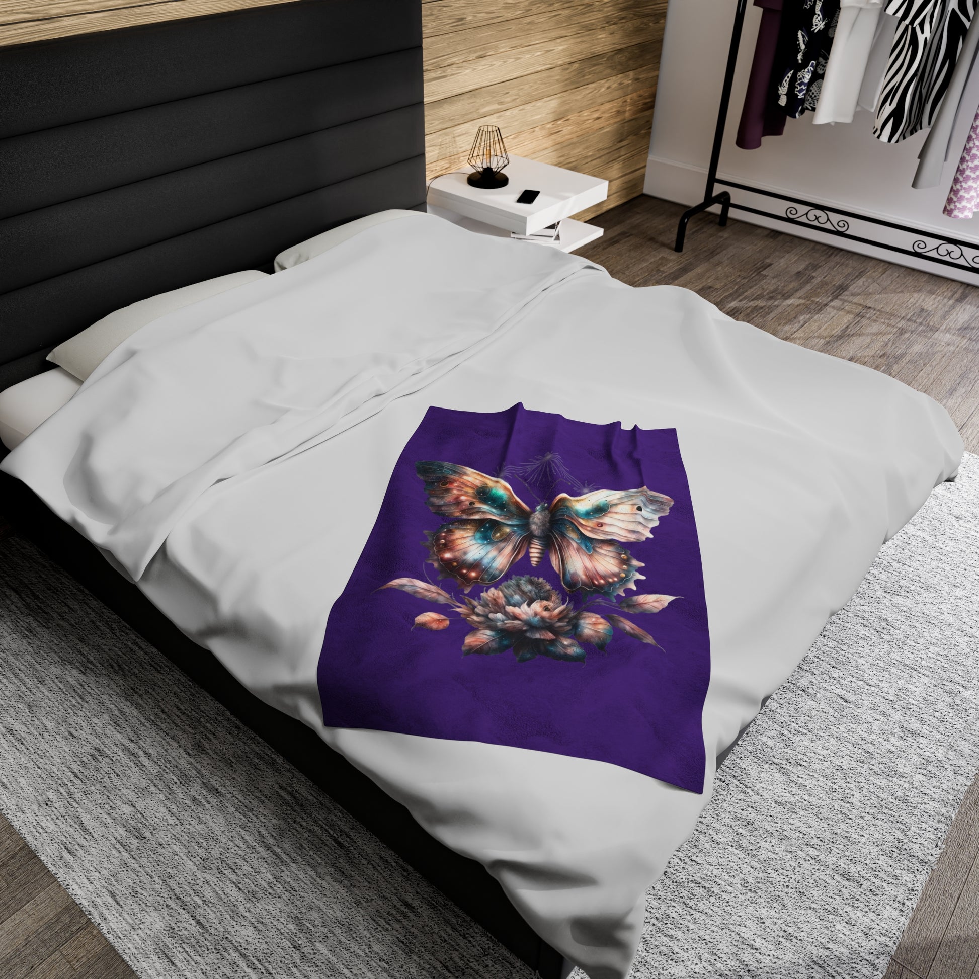 Purple Butterfly Velveteen Plush Blanket - Luxuriously Soft 83% Polyester & 17% Spandex