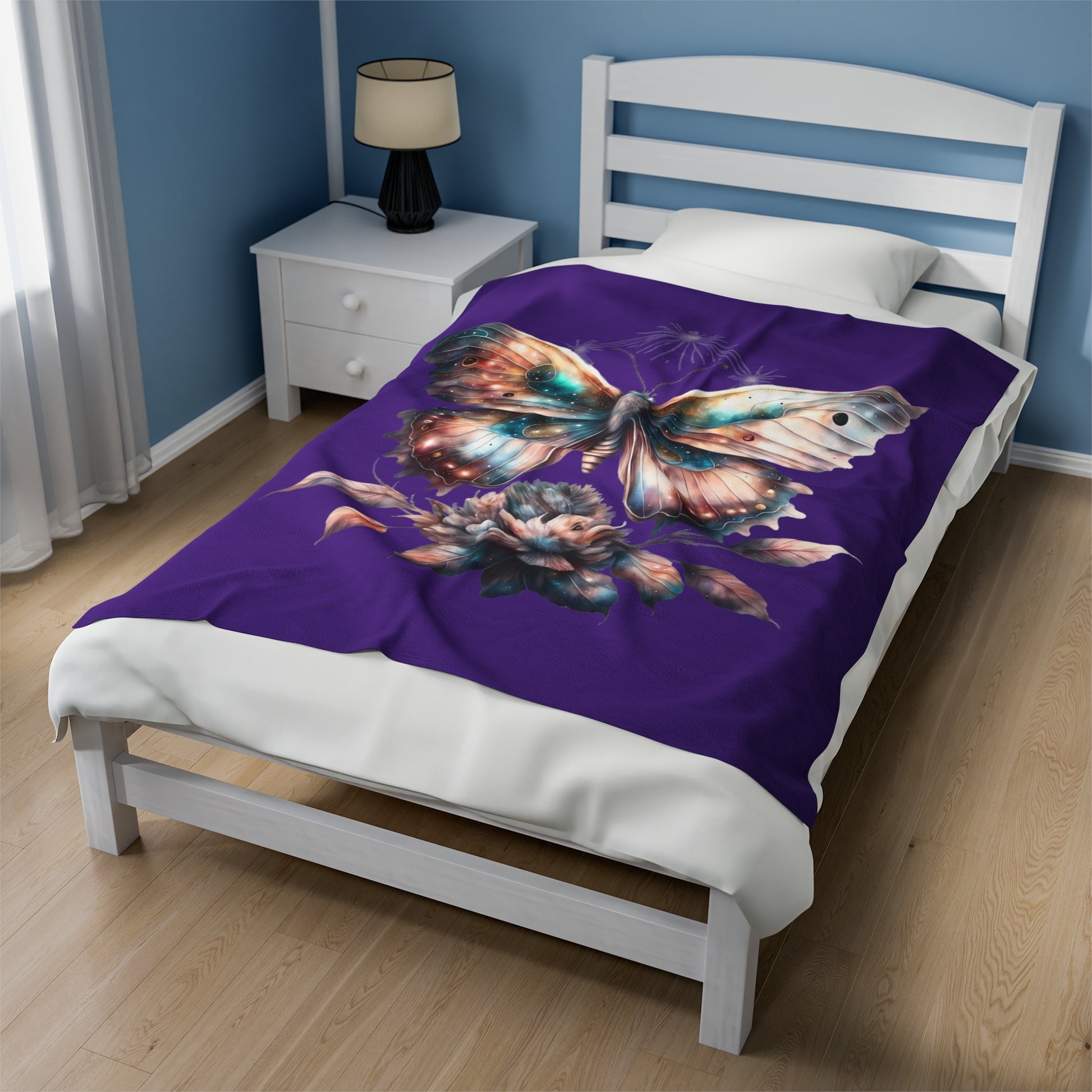 Wrap yourself in the comfort of our exquisite velveteen plush blanket featuring a stunning butterfly design. Handcrafted with care, this blanket is perfect for adding a touch of elegance and warmth to your home.