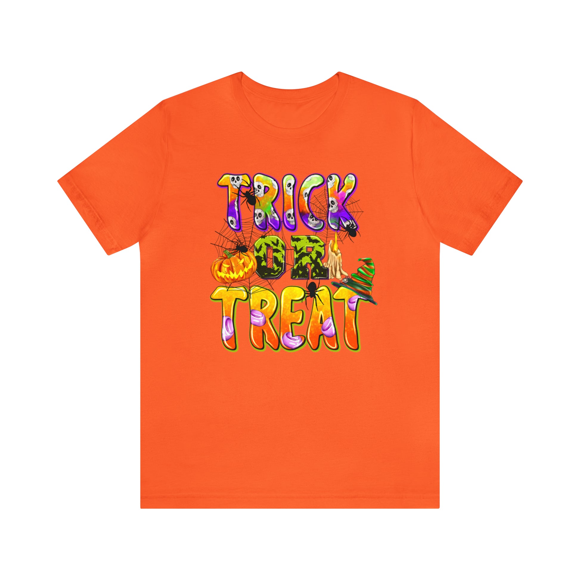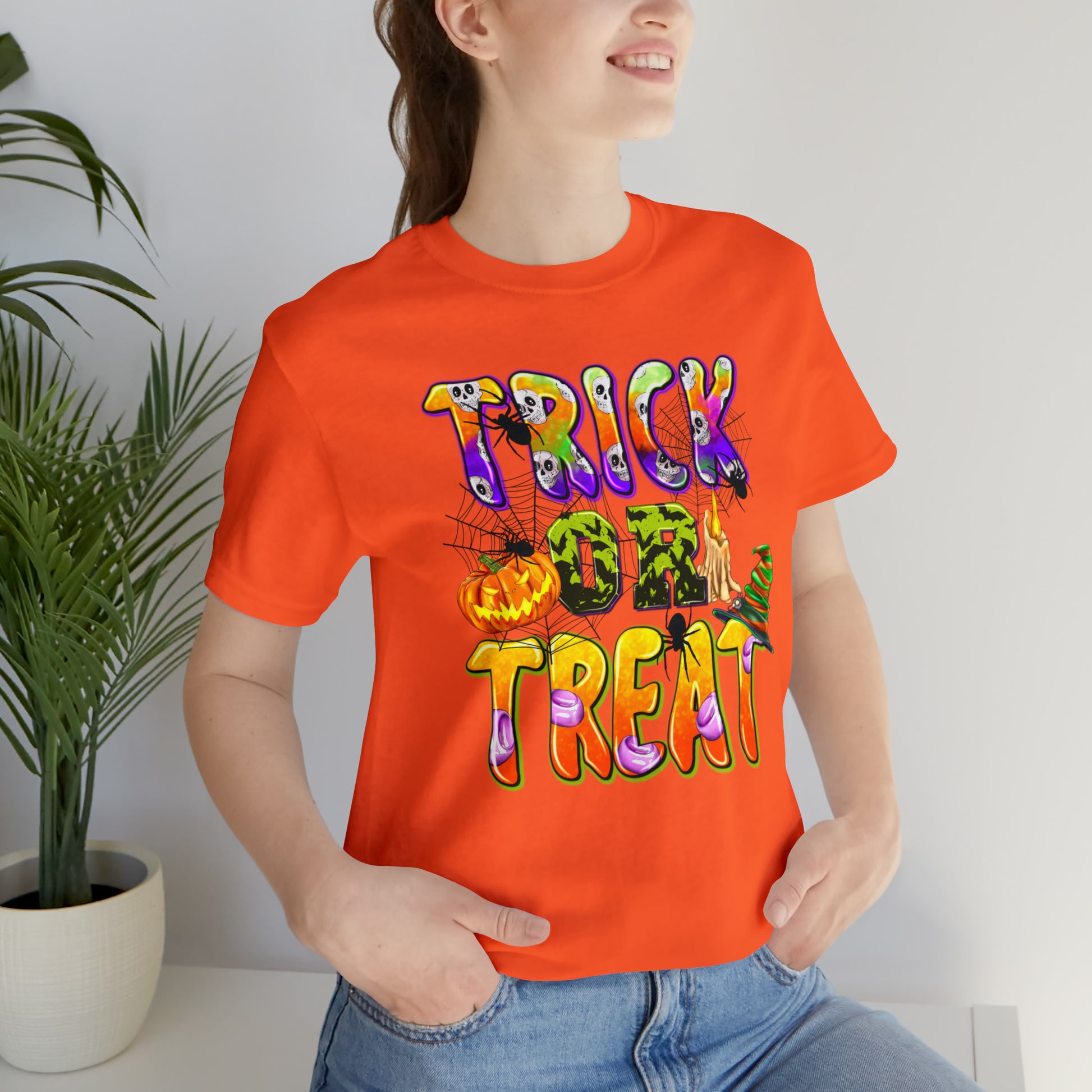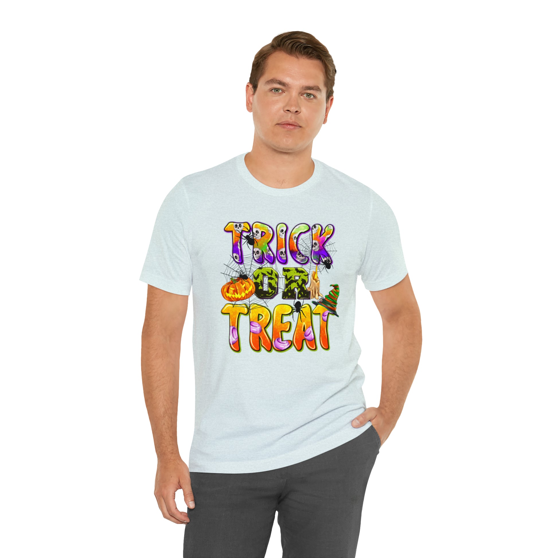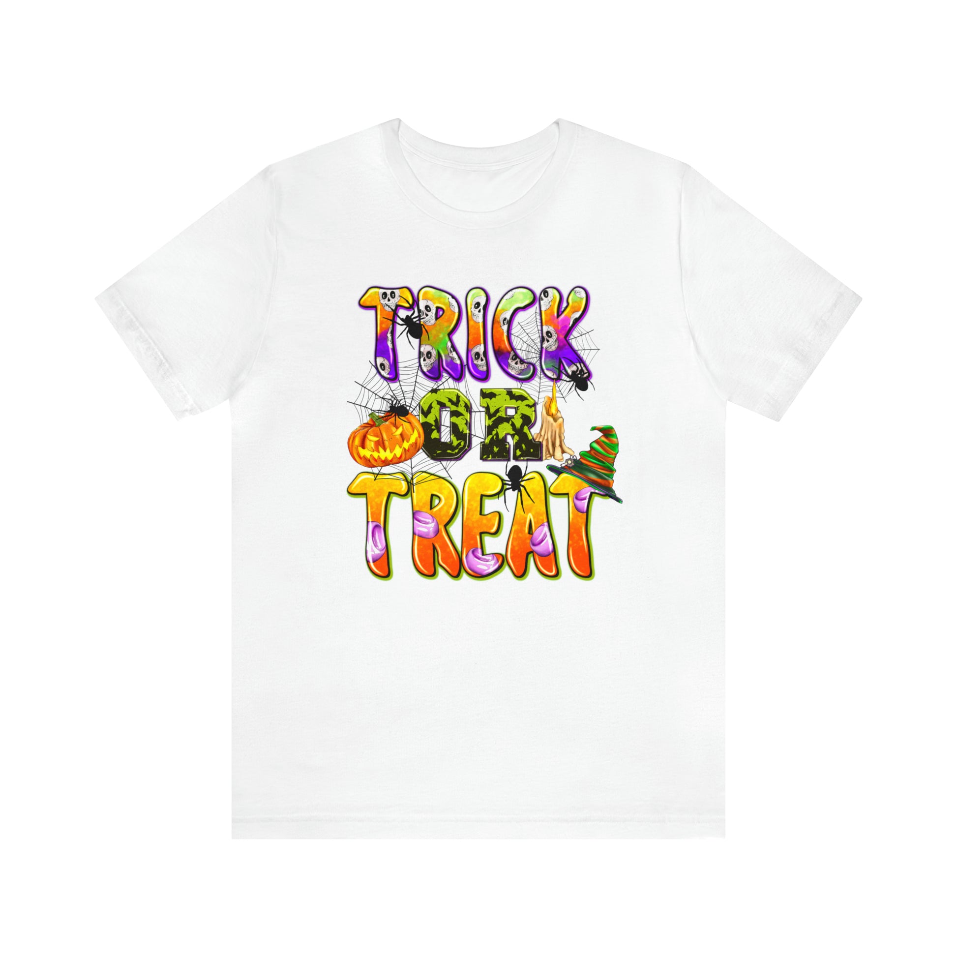 Elevate your Halloween style and embrace the spirit of the season with our "Trick or Treat Delight" Halloween Tee. Make a bewitching statement wherever you go, and celebrate Halloween with style and flair. Order yours today and get ready for a spooktacular time!