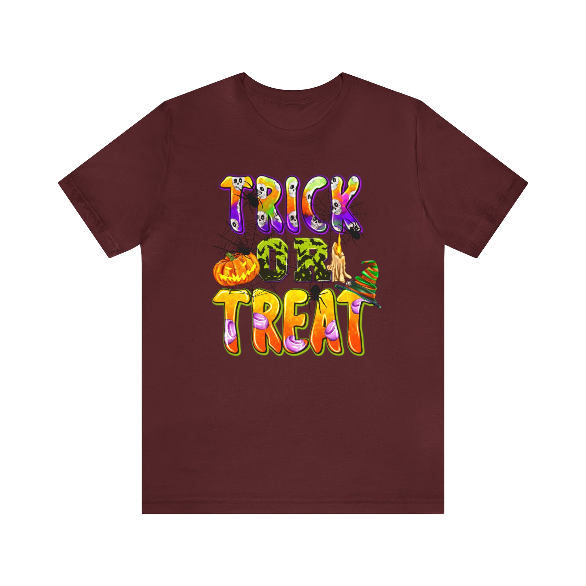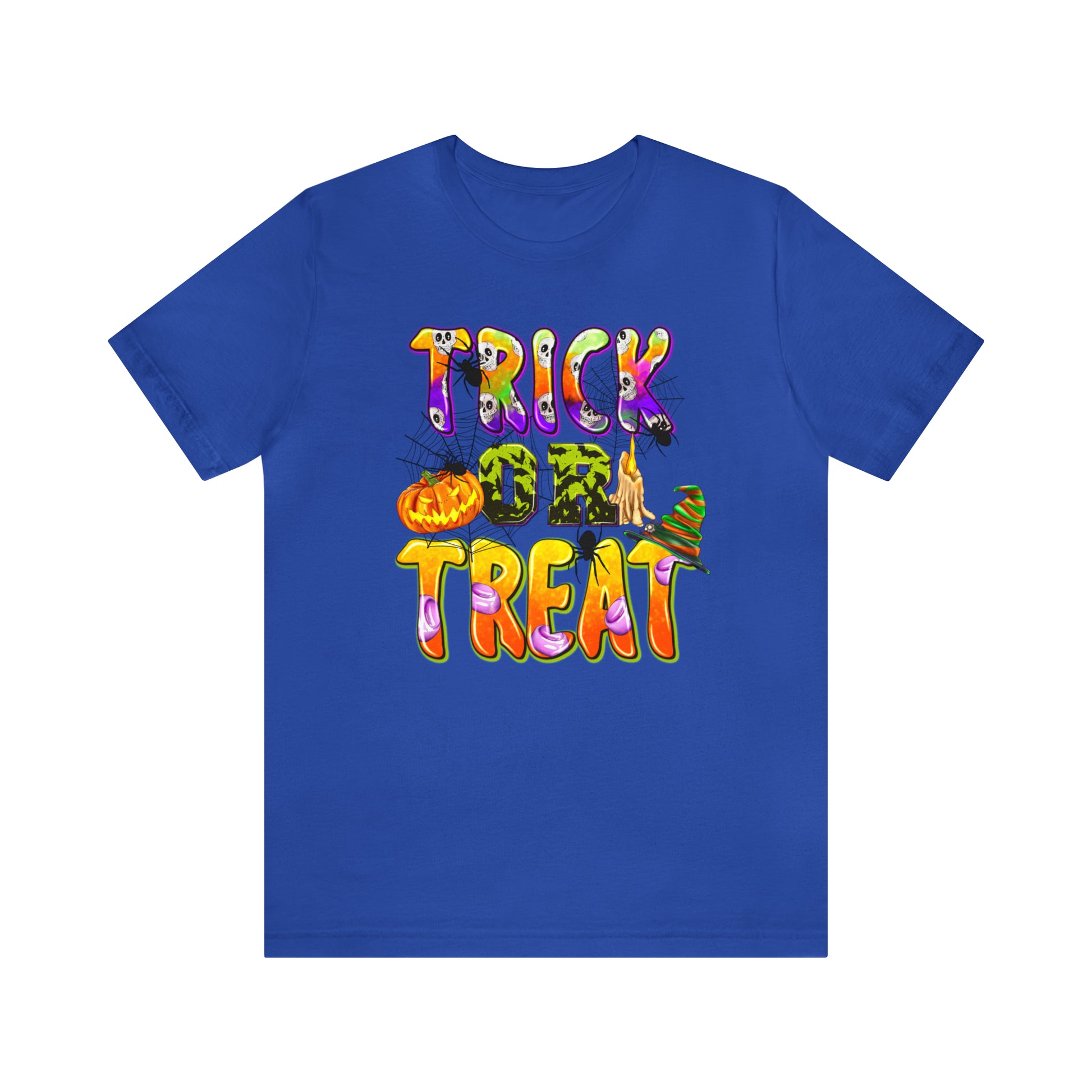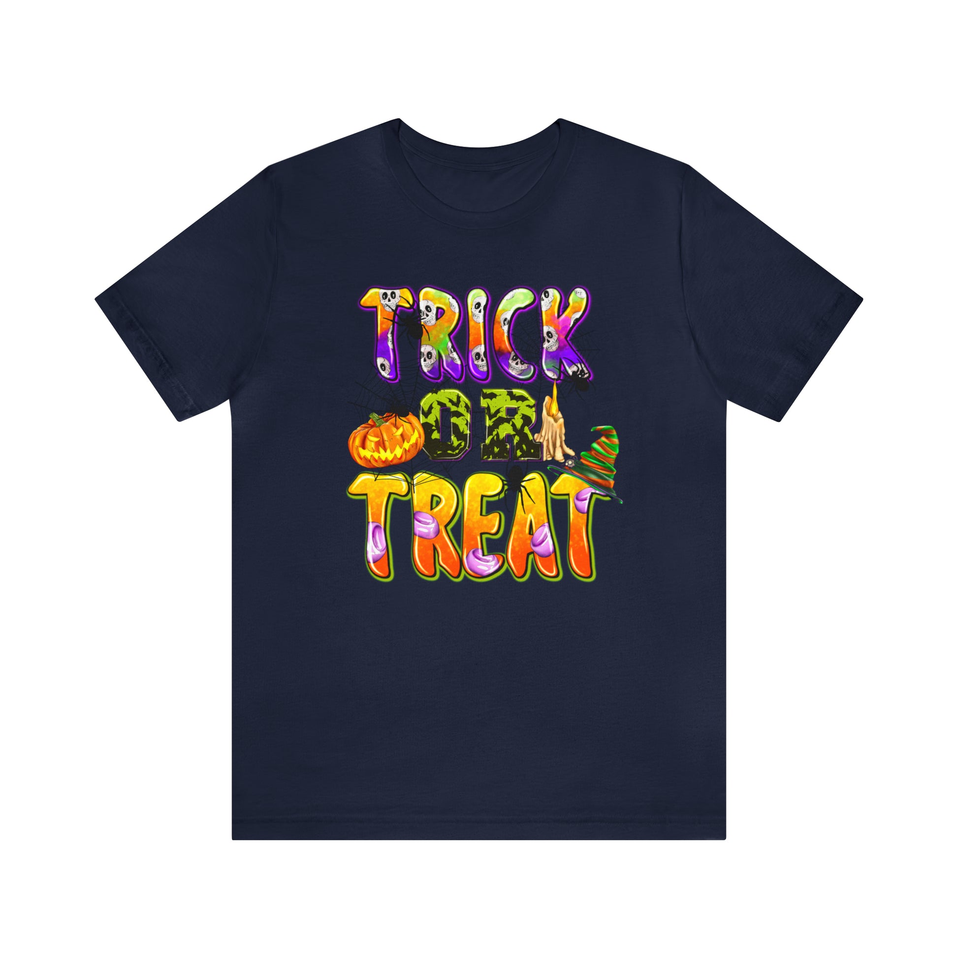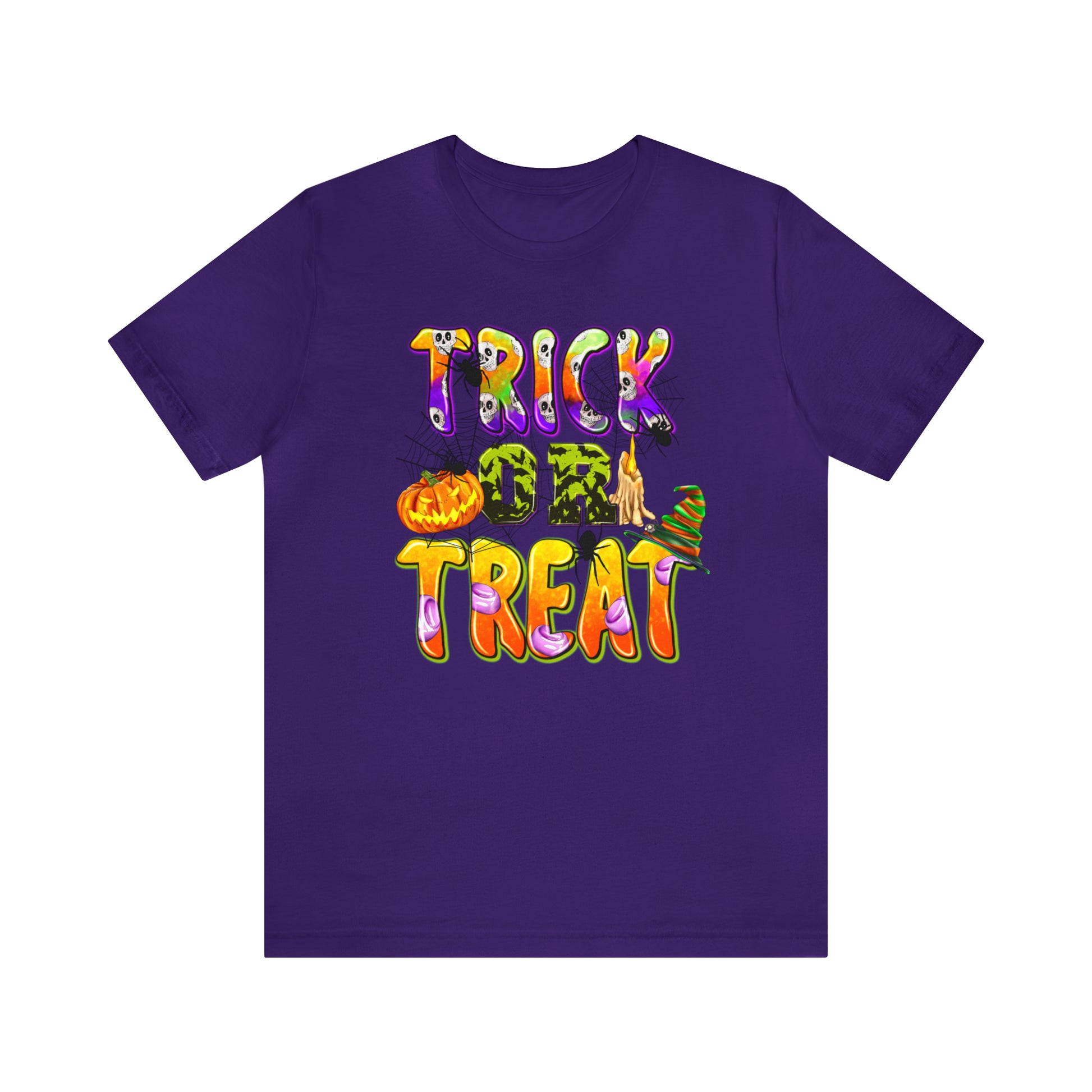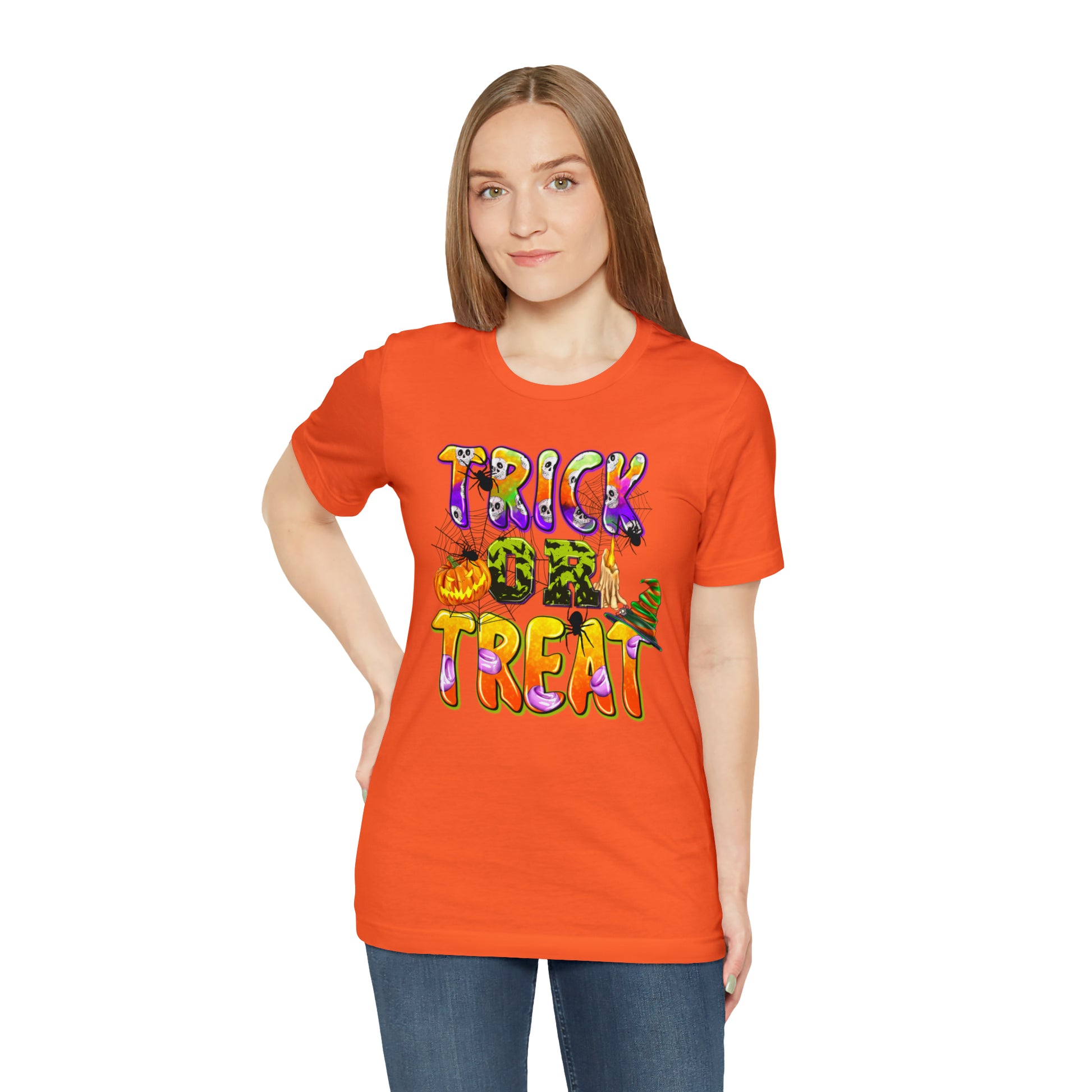 Elevate your Halloween style and embrace the spirit of the season with our "Trick or Treat Delight" Halloween Tee. Make a bewitching statement wherever you go, and celebrate Halloween with style and flair. Order yours today and get ready for a spooktacular time!
