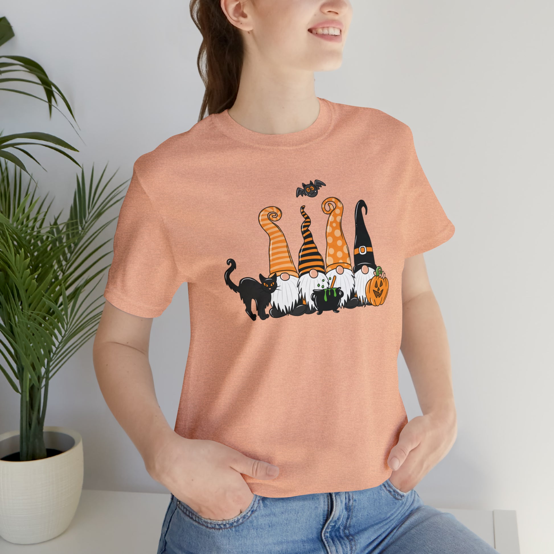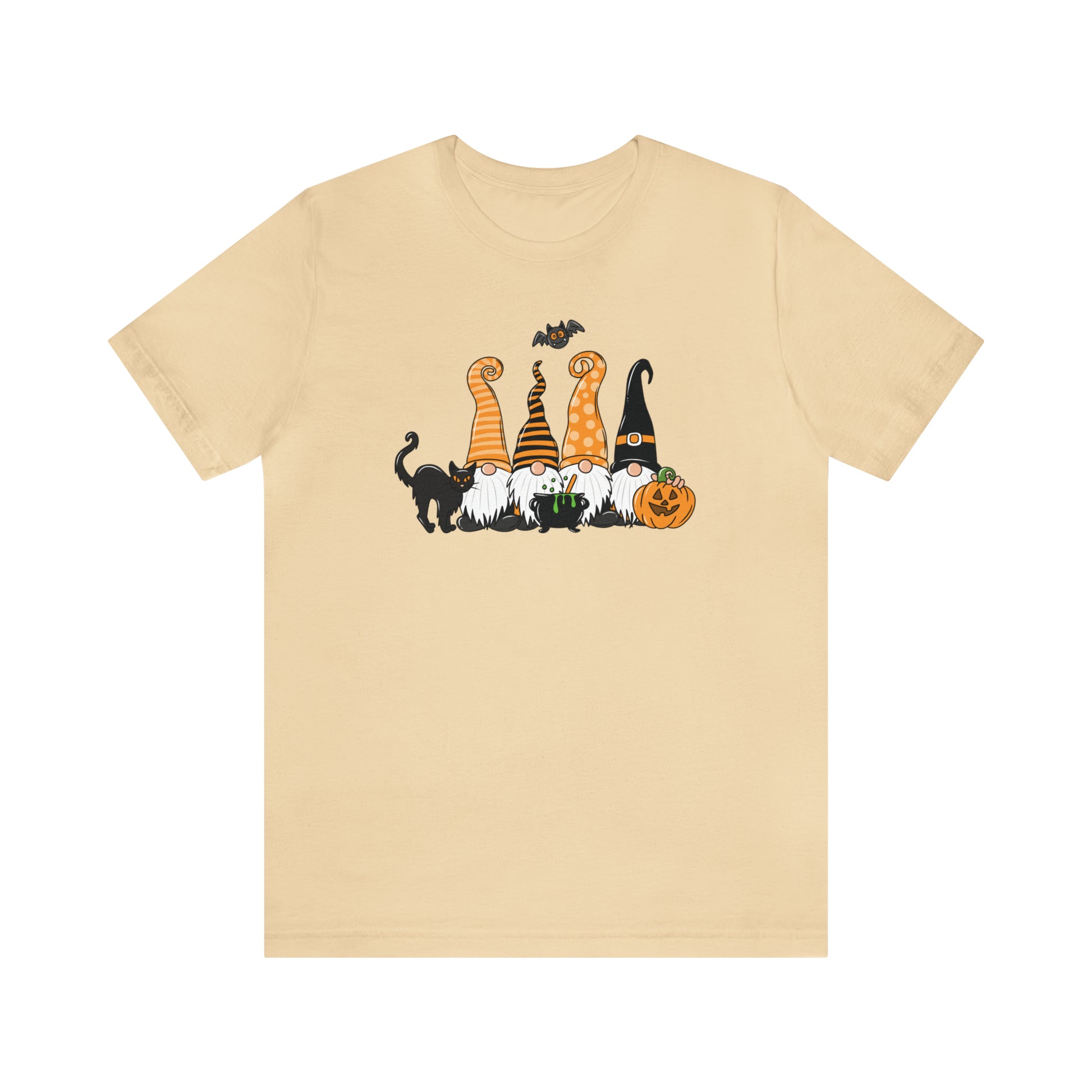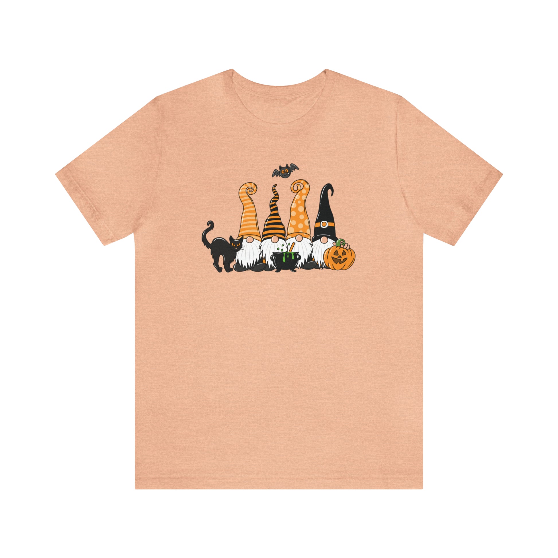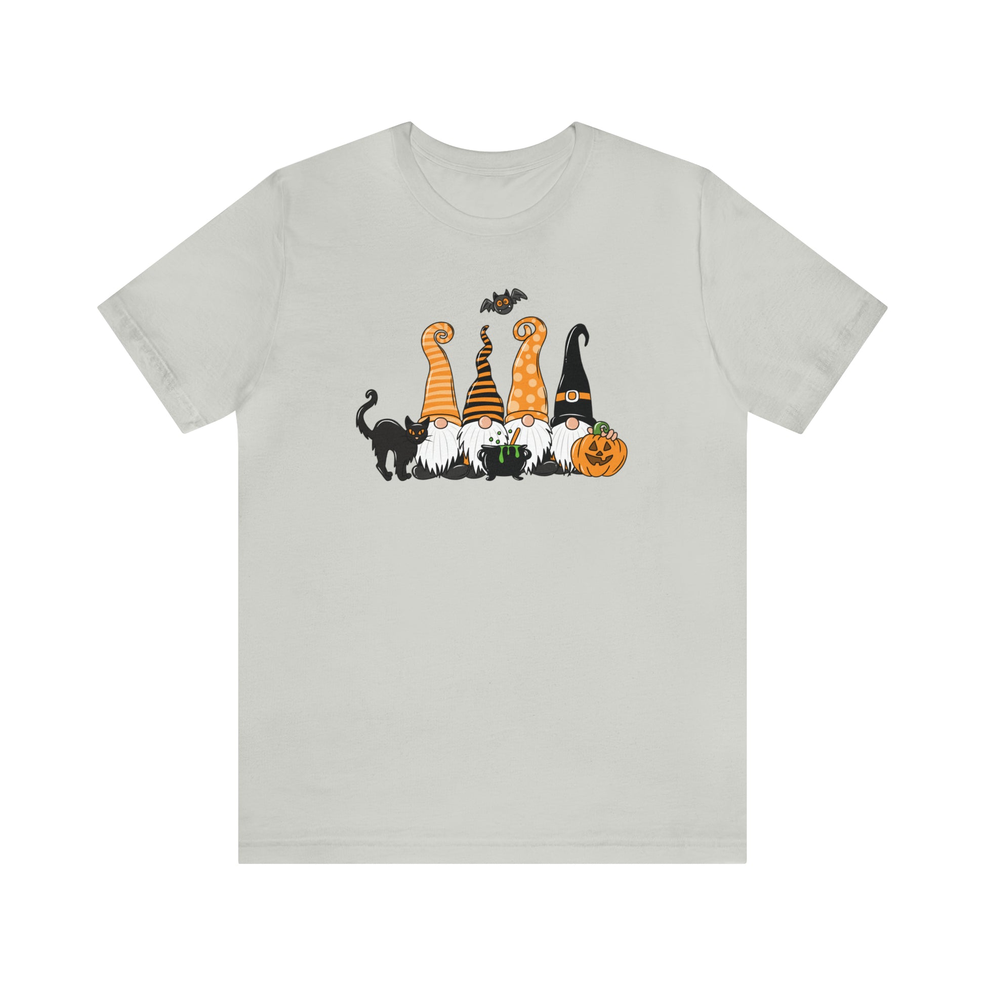 Join the whimsical world of enchantment with our "Witchy Gnome Gathering" Tee! This enchanting t-shirt features four charming gnomes dressed as witches, accompanied by a mischievous black cat, a bubbling cauldron, and a friendly jack-o'-lantern. It's a delightful celebration of all things magical!