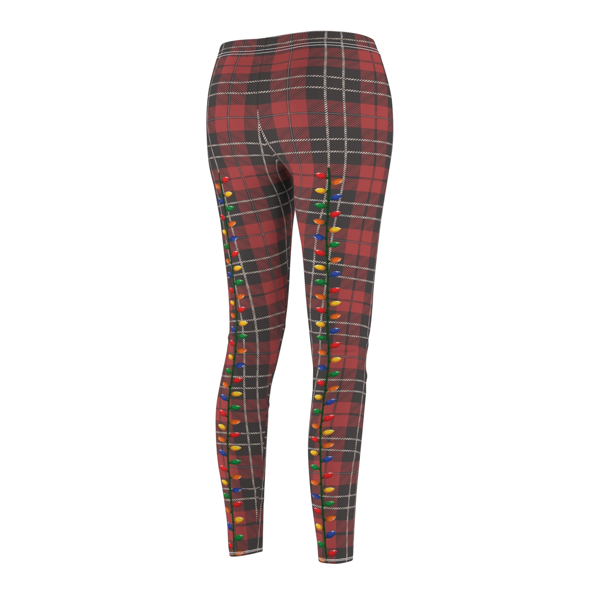 Women's buffalo plaid red leggings with christmas light faux back seam, Christmas lights leggings, soft exclusive leggings, athleisure